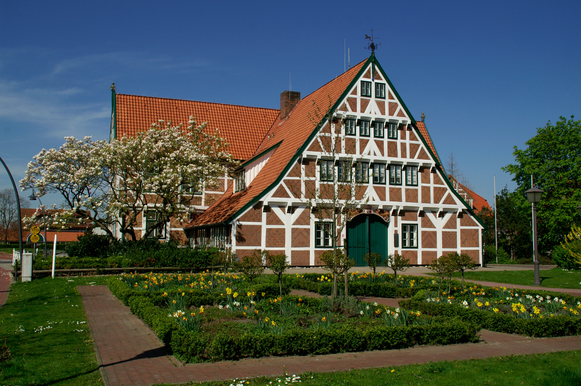 Typisch für das Alte Land sind die liebevoll gepflegten Fachwerkhäuser, prächtigen Höfe und historischen Kirchen, die von der langen Geschichte der Region erzählen. Die weiten Plantagen, kleinen Deichstraßen und ruhigen Wege machen die Gegend zu einem idealen Ziel für Radfahrer, Spaziergänger und alle, die Erholung in der Natur suchen.